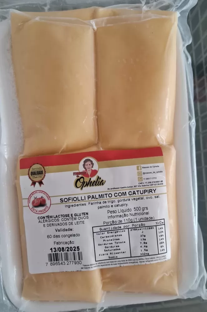Descubra o sabor inconfundível do Sofioli Palmito e Catupiry® 500g, uma massa fina e artesanal feita com o cuidado e a tradição da Ophelia. Nossa massa delicada é recheada com palmito fresco e o cremoso Catupiry®, proporcionando uma combinação leve e saborosa que encanta em cada mordida.