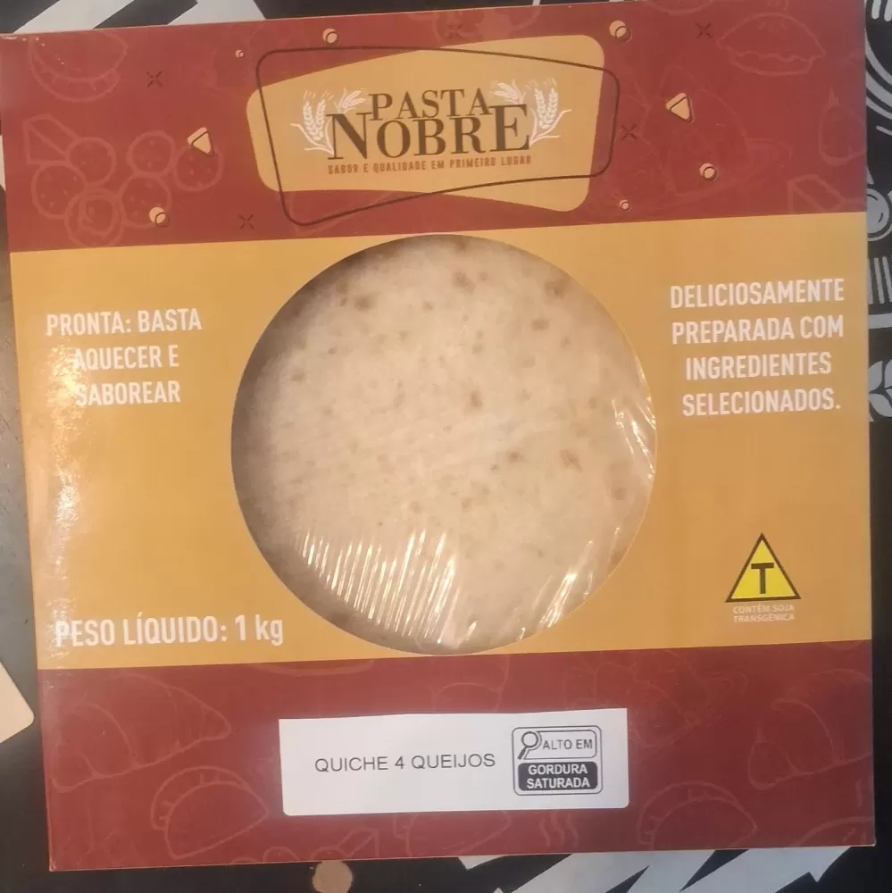 A quiche 4 queijos Pasta Nobre combina uma massa leve e crocante com um recheio cremoso feito de uma seleção especial de queijos: mussarela, parmesão, queijo prato e provolone. Pronta para esquentar e servir, é perfeita para quem aprecia um sabor marcante e sofisticado, ideal para entradas, lanches ou refeições rápidas. Embalagem de 800 gramas, garantindo qualidade e praticidade com o toque artesanal Pasta Nobre.