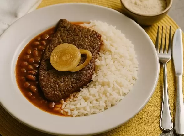 Combinação clássica do dia a dia com cara de comida feita em casa: bife grelhado macio e suculento, acompanhado de arroz integral soltinho e feijão carioca cremoso, temperado no ponto. Uma refeição completa, saborosa e equilibrada — perfeita para quem busca praticidade sem abrir mão do sabor. É só aquecer e comer, sem bagunça, sem fila e sem perder tempo.